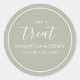 A sage green party favor, with please take a treat wording, a simple, minimalist design, Perfect for modern parties, and wedding reception decor, a chic stickers design, with stylish typography, a classic, packaging design.