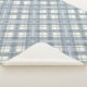 This cosy sherpa fleece blanket features a diagonal plaid pattern in shades of slate blue, sage green and cream.