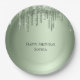 Sage Green Sparkle Glitter Drips Birthday Paper Plate
