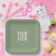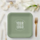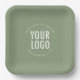 Sage Green Square Paper Plates Custom Logo Printed