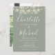 Featuring pretty string lights and signature style names, this elegant wedding invitation can be personalised with your wedding day details in chic white lettering on a sage green background with your chosen photo on the reverse. Designed by Thisisnotme©