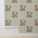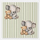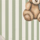 Sage Green Striped Elephant and Teddy Bear Wallpaper