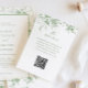 Sage Green Toile French Floral Wedding Details QR Enclosure Card