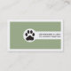 Sage green Vet/Veterinary Clinic, paw minimalist business cards that features a black paw on a white circle. Sage green background with white borders. A great, feminine design for veterinarians or pet clinic/hospital services.