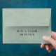 Expectations met; I liked that I had the opportunity to include our address on the back of the envelope. This color matched very well with my save the date. The color was the same as shown above. I had our address labeled on the back of the envelope and the font/printing met my expectations.