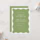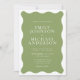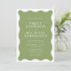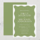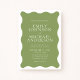 This wedding invitation features a soft sage green center with an organic wavy shape, framed by a clean white border. The flowing wavy edges create a modern yet elegant look, while the muted green tone gives the design a calm, natural, and refined feel. The clean serif typography keeps the invitation timeless and easy to read.