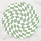 Modern bohemian Sage Green colour theme bridal wedding party products. Evergreen retro trendy warped checks design, warped chequered paper plates in beautiful elegant and chic Sage Green and white colour.