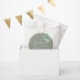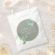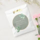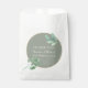 Chic and minimalist wedding favour bag with a muted sage green circle, faux gold border, and hand-painted eucalyptus leaves. Perfect for candy, treats, or small gifts at your reception or rehearsal dinner.