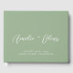 A simple modern minimalist unique white typography on sage green, personalised wedding guest book, with a trendy unique contemporary typography for the modern minimalist. Wedding guest signing keepsake book to greet your guests at the wedding reception, or a bridal shower, or engagement party, to be your keepsake forever. If you would like to change the colours of fonts or font style, after personalising simply click on "edit further", select your type and see the colour palette on the right, and the font choices.