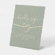 Invite guests to share their wishes and advice with this elegant sage green wedding guest book sign. Designed with chic calligraphy and a modern gold rope heart, this pedestal sign adds a thoughtful and stylish touch to your reception table. A simple way to create lasting memories for the new Mr. and Mrs.