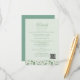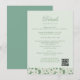 Sage green wedding details card featuring romantic script typography and soft floral accents. This customizable information insert includes celebration details, accommodations, RSVP instructions, and website information. Designed to coordinate beautifully with a garden inspired, cottagecore, or vintage wedding invitation suite.