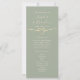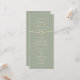Elegant, minimal modern double-sided sage green wedding program with gold rope heart and simple calligraphy script.