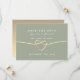Trendy, elegant, minimal sage green Wedding Save The Date Invitation with simple calligraphy script and gold rope heart.