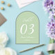 Sage Green Wedding Table Number Acrylic