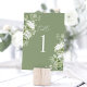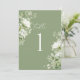 Soft sage green tones paired with organic greenery watercolor florals create an elegant and calming table number design for modern garden weddings.