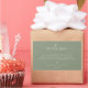 Minimalist Sage Green, wedding guest welcome bag label. Template provides lines for your message, names and event date.