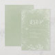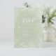This elegant RSVP card features a soft sage green background, adorned with a botanical leaf frame and a graceful modern script header. The classic “Accepts with Pleasure” and “Declines with Regret” response lines are set in timeless serif text for readability and charm. Ideal for rustic, garden, or nature-inspired weddings.