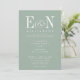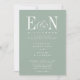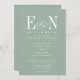Sage Green & White Elegant Wedding. Elegant white text on sage eucalyptus green background. Features gorgeous customisable bride and groom monogram initials with ampersand. Personalise with your Monogram initials and wedding text. We invite you to visit our Zazzle store, GJ Design Co, to view matching products