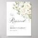 An elegant reserved seating sign designed in soft sage green and white watercolor florals, created for refined wedding ceremonies and formal receptions.