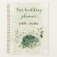 Beautiful romantic planner featuring sage green and white flowers and some pretty leaves .