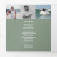 Simple modern graphic funeral program square shaped in a muted sage green and white. Replace the sample text and twelve placeholder photos with your own special photos and memorial order of service, obituary, reading or poem, and acknowledgements, special quote and personal information details. Other matching funeral keepsake remembrance items are available. This is idea for outdoor enthusiasts lovers of nature and plants and male gardeners. Design by Sarah Trett for www.mylittleeden.com