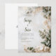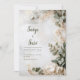 This stunning wedding invitation design is highly romantic, minimalist, and elegant, featuring a soft, natural border. The background is a bright white with subtle texture, resembling aged parchment or lightly brushed plaster, accented by faint touches of beige and pale grey-green. The border is composed of delicate eucalyptus leaf, rendered in soft dusty sage and muted green tones, contrasted by sprays of airy, delicate white filler flower and tiny baby's breath sprigs. Large, luminous clusters of soft ivory or cream hydrangea blooms anchor the bottom right corner, completing the organic, tranquil look. The entire composition has a soft, light, and airy quality, with subtle gold speckle accents woven throughout the foliage, adding a touch of understated luxury. The overall theme is one of serene nature and classic simplicity, perfect for a chic spring or summer outdoor ceremony, a rustic yet elegant event, or a timeless formal wedding. This exquisite stationery is also well-suited for a formal anniversary celebration or a refined baby shower announcement. This invitation's graceful design can also be easily adapted for business opening announcements, high-end product launch flyers, milestone birthday party invitations, or elegant dinner gala event stationery.