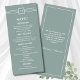This personalised Modern Sage Green Wedding Menu Card features a chic, minimalist design, perfect for a contemporary wedding celebration. With elegant white typography and a graceful script font, it beautifully showcases the couple's monogram. Clean lines and a soft sage green background create a timeless, simple, and classic look that will complement any modern wedding aesthetic. These menu cards are the ideal choice for couples seeking a sophisticated yet understated touch to their special day.