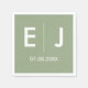 Elegant classic monogrammed napkins in sage green and white with your initials and wedding date in traditional minimalist text.