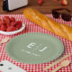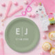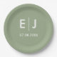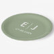 Elegant classic monogrammed plates in sage green and white with your initials and wedding date in traditional minimalist text.