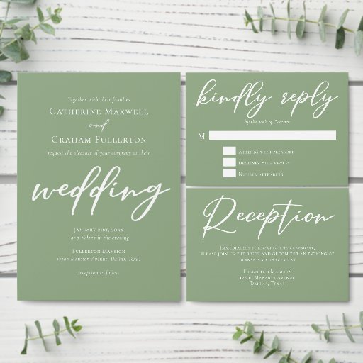 Sage Green White Typography Minimalist WeddingDesigned by Elisha Seybold