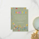Share your appreciation with this sage green wildflower “Baby in Bloom” thank you card. Featuring a heartfelt message framed by a colourful watercolor meadow on a soft sage background, this flat card is perfect for expressing gratitude after a baby shower or special celebration. Coordinates beautifully with the rest of your Wildflower Baby in Bloom stationery for a cohesive, botanical look.