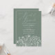 Elegant, modern, and nature-inspired—this bridal shower invitation features a soft sage green background, delicate white wildflower outlines, and stylish white script. Perfect for spring, summer, or fall bridal showers with a sage green theme, garden party vibe, or rustic boho charm. Ideal for a chic bridal brunch celebration outdoors or in a cosy backyard setting.