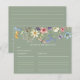 Sage Green Wildflower Bridal Shower Recipe Card
