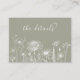 Soft, natural, and effortlessly elegant, this sage green wildflower details card is designed to complete your wedding invitation suite with a calm and refined touch. Featuring delicate hand-drawn botanical florals in a minimalist line art style, this design brings an organic and timeless feel to your wedding stationery.