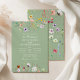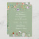 Invite your guests in style with this Sage Green Wildflower Wedding Invitation, featuring hand-drawn wildflowers in soft, romantic colours set against a muted sage green background.
