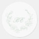 Sage Green Wreath Monogram Elegant Wedding Classic Round Sticker