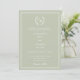 Sage green wreath monogram simple wedding invitation