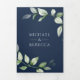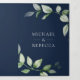 Sage Greenery Gold Ampersand QR Code Navy Wedding Tri-Fold Invitation