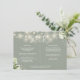 An elegant greenery floral string lights sage green wedding details information enclosure card personalised with your special details set in stylish typography and your names and wedding date on the reverse. Designed by Thisisnotme©