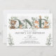 Sage Greenery Woodland Animals 1st First Birthday Invitation