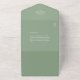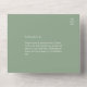 Lovely chic and simple wedding invitation, featuring a all in one design with includes a tear-off RSVP section with convenient QR code. Lovely couple monogram displayed on the inside top flap in a combination of contemporary fonts in sage greens. Text throughout comes in a sage green, against an elegant ivory background. The outside jacket includes text in ivory against a lovely sage green. Fully customisable.