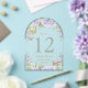 This exquisite acrylic table number features a beautiful sage green and purple lilac floral design in an arch shape. Easily personalise each table number by clicking the "Edit Using Design Tool" button to re-arrange and format the text to your liking. Choose from two exquisite finishes: Clear or Frosted, and select between two stylish corner options: Rectangle or Arched.