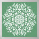 This white mandala sits on a grey-green background. The colours are natural and relaxing. Part of the Pras Mandala Collection.