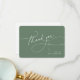 Personalized Christmas thank you cards feature minimalist elegant merriest Christmas script in sage green and white, modern and simple.