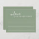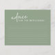 The Sage Minimalist Script Bridal Shower Advice Card is a perfect addition to any modern bridal shower. Featuring a simple and elegant design with modern script lettering, this advice card is both stylish and functional. Your guests will love sharing their well wishes and advice for the bride-to-be on this beautiful sage-coloured card.