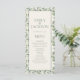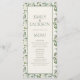 Elegant sage and moss green leaves on cream boho-style wedding reception menu. Contact us for help with customisation or coordinating products.