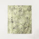 A dusty sage green base is layered with a myriad of graphic elements in various opacities, creating depth and visual interest.