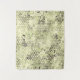 A dusty sage green base is layered with a myriad of graphic elements in various opacities, creating depth and visual interest.