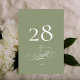 Sage on White Elegant Calligraphy Wedding Table Number