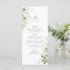 A refined sage organic greenery wedding reception dinner menu featuring soft watercolor botanicals and elegant typography.